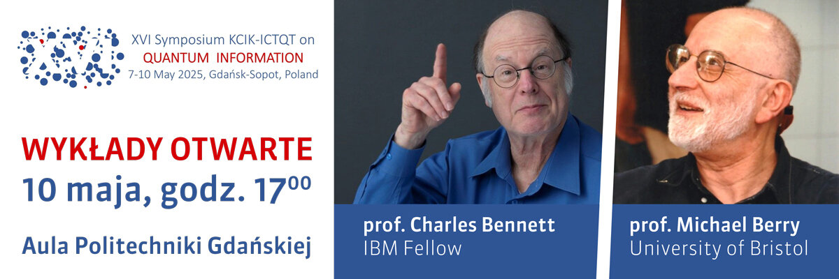 Na Politechnice Gdańskiej wykłady w ramach sesji XVI Sympozjum Informacji Kwantowej odbędą się w sobotę 10 maja o godz. 17.00 w Auli w Gmachu Głównym Politechniki Gdańskiej. Wykłady wygłoszą prof. Charles Bennett, odkrywca kryptografii kwantowej oraz prof. Michael Berry, odkrywca fazy kwantowej nazwanej jego imieniem.