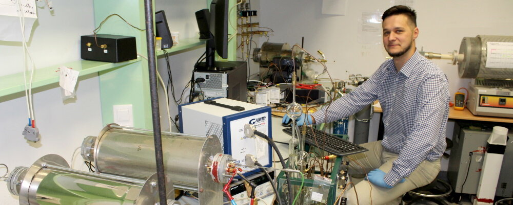 – Pozyskiwanie energii z odnawialnych źródeł często może się odbywać tylko w określonym miejscu lub czasie, dlatego musi być ona w jakiś sposób magazynowana. Znakomitym nośnikiem energii chemicznej, która za pomocą odpowiednich reakcji elektrochemicznych może być zamieniana w elektryczną, jest wodór – tłumaczy dr inż. Sebastian Wachowski z Wydziału Fizyki Technicznej i Matematyki Stosowanej Politechniki Gdańskiej (na zdjęciu).