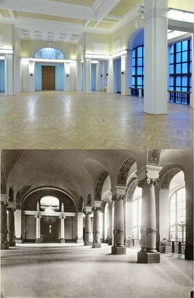📐✂ In this archival picture you can notice some ionic column heads decorated with the symbols of architecture (compasses and steel squares). This kind of strapwork ornamentation was typical for the architecture of Gdańsk at the turn of the 16th and 17th Century, whereas the the stair railing was kept in a modern style, typical for the 20th Century Secession.