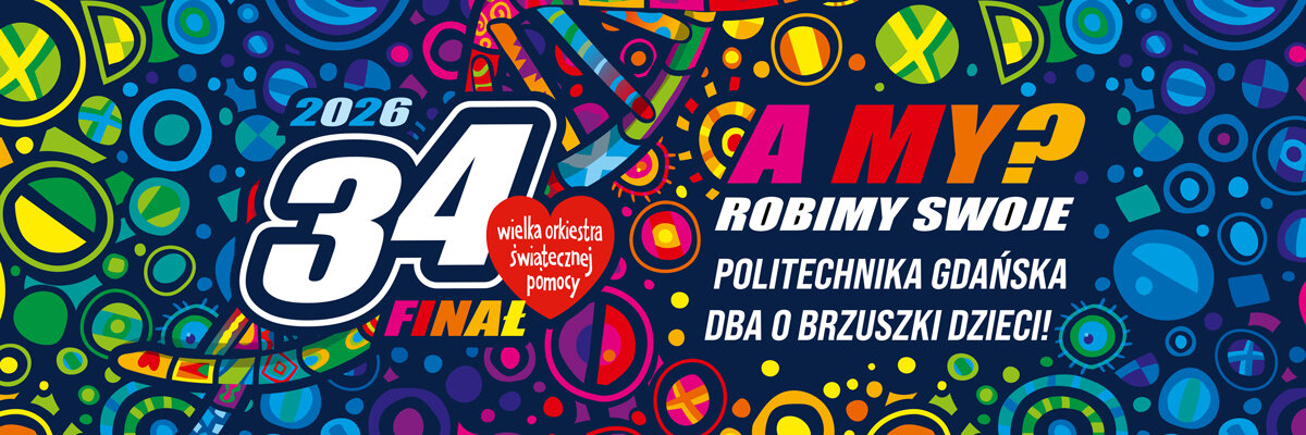 Zdrowe brzuszki naszych dzieci to hasło przewodnie 34. finału Wielkiej Orkiestry Świątecznej Pomocy, która zagra 25 stycznia 2026 r. Zebrane w ramach akcji środki przeznaczone zostaną na diagnostykę i leczenie chorób przewodu pokarmowego u dzieci. Politechnika Gdańska włącza się w te działania organizując aukcje online, poprzez zbiórkę do e-skarbonki oraz skarbonek stacjonarnych na terenie kampusu.