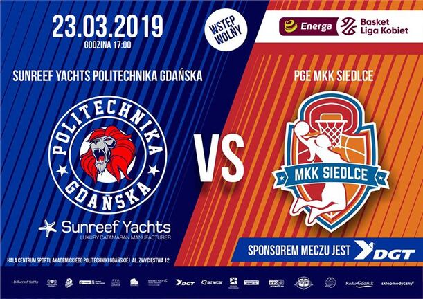 Zapraszamy serdecznie na spotkanie 24. kolejki Energa Basket Ligi Kobiet, w którym koszykarki Sunreef Yachts Politechnika Gdańska zmierzą się z PGE MKK Siedlce! 🏀 ⛹♀ 💪 Wspólnie gorącym dopingiem pomóżmy naszym koszykarkom odnieść...