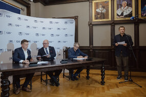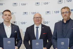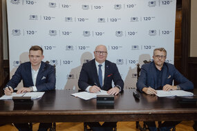 Na zdjęciu od lewej: Mateusz Rzymowski, prezes zarządu REVOBEAM, prof. Krzysztof Wilde, rektor PG, Paweł Lulewicz, prezes zarządu PGZ Stoczni Wojennej. Fot. Bartosz Bańka/PG
